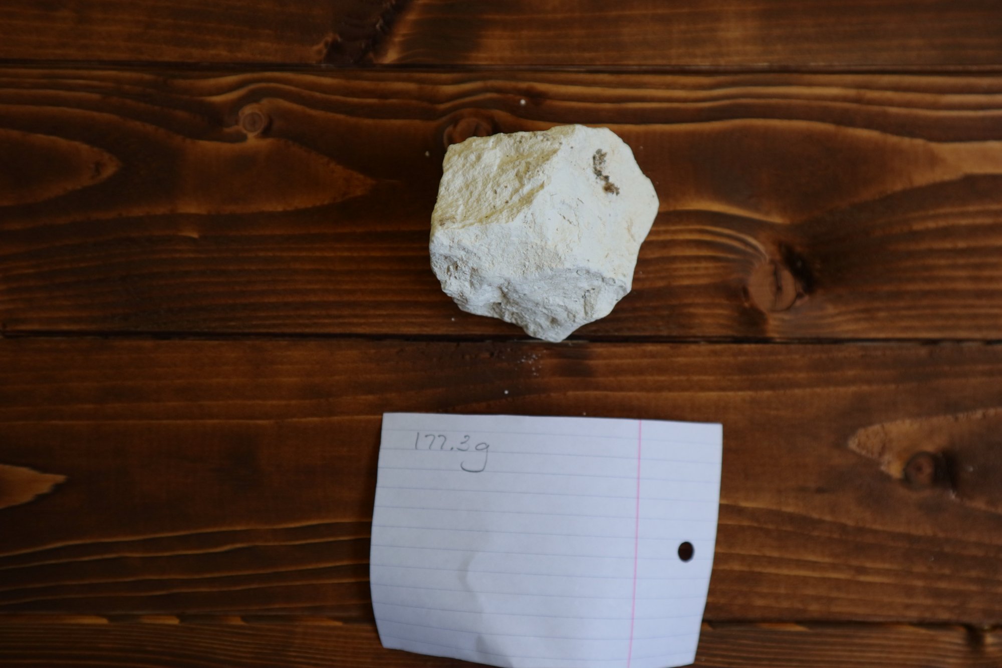 Chalk block weighing 177.3 g. Paper label with sufficient area to record other identifying information throughout the experiment.