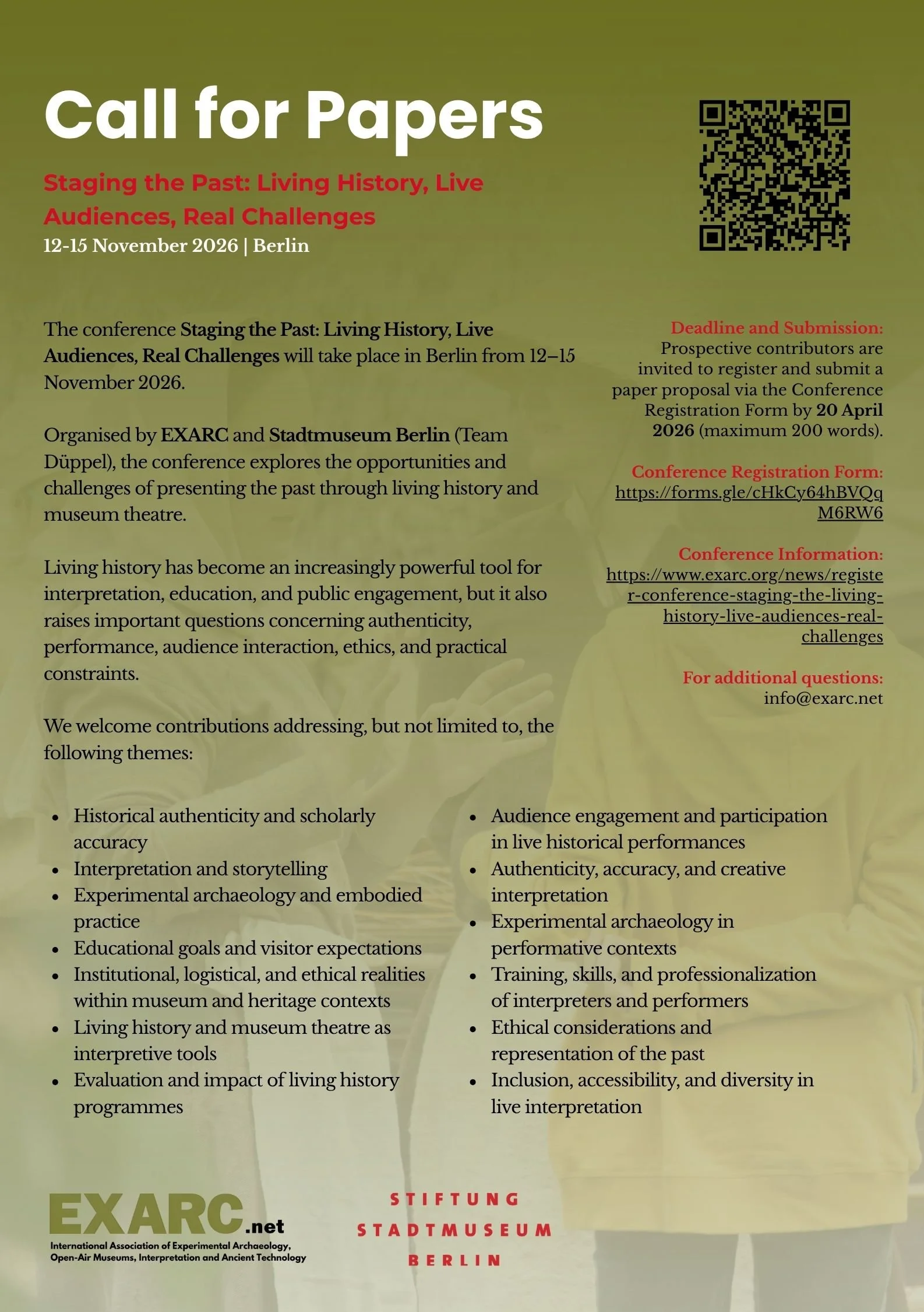 EXARC and the Stadtmuseum Berlin (Team Museumsdorf Düppel) invite proposals for papers for the international conference Staging the Past: Living History, Live Audiences, Real Challenges.