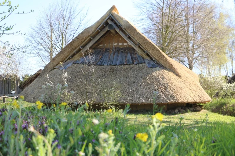 The Langobardenwerkstatt started in 1990 parallel to ongoing excavations as a place for experimental archaeology with experiments on iron smelting, house constructions, limekilns, pottery, textile crafts etc. Therefore we show several reconstructions of typical pit houses and other buildings from the Roman Iron Age in the western Altmark, expanded by areas for educational purposes and an exhibition about the archaeological site.